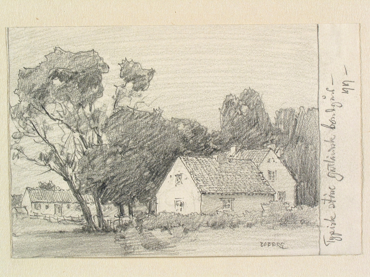 Gotland. "Typisk större gotländsk bondgård." Teckning av Ferdinand Boberg