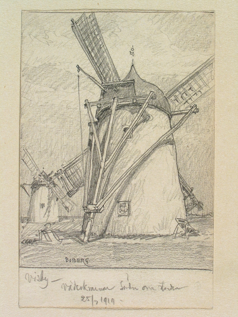 Gotland, Visby. "Väderkvarnar söder om staden."