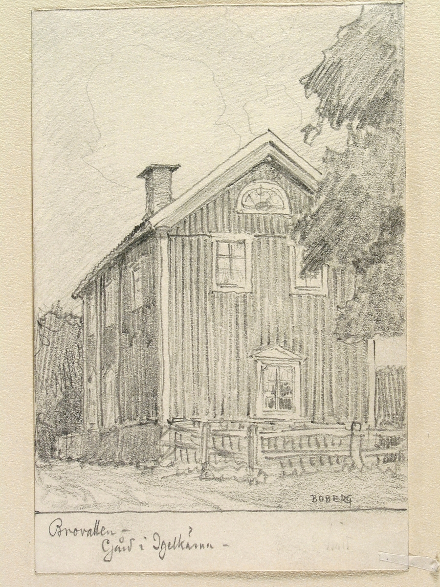 Dalarna, Folkärna sn., Brovallen. Gård i Igelkärna. Teckning av Ferdinand Boberg