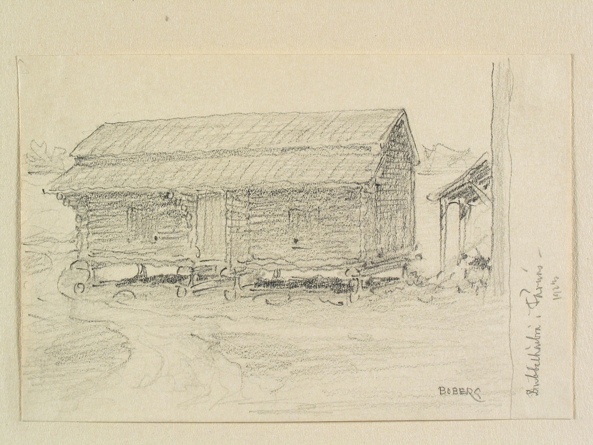 Dalarna, Mora sn., Färnäs. Dubbelhärbre. Teckning av Ferdinand Boberg