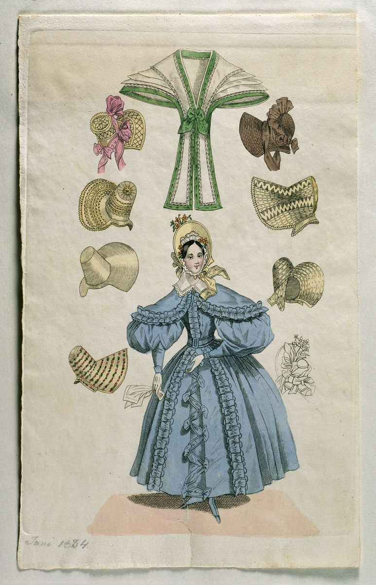 Modeplansch ur Magasin för Konst, Nyheter och Mode, 1834.