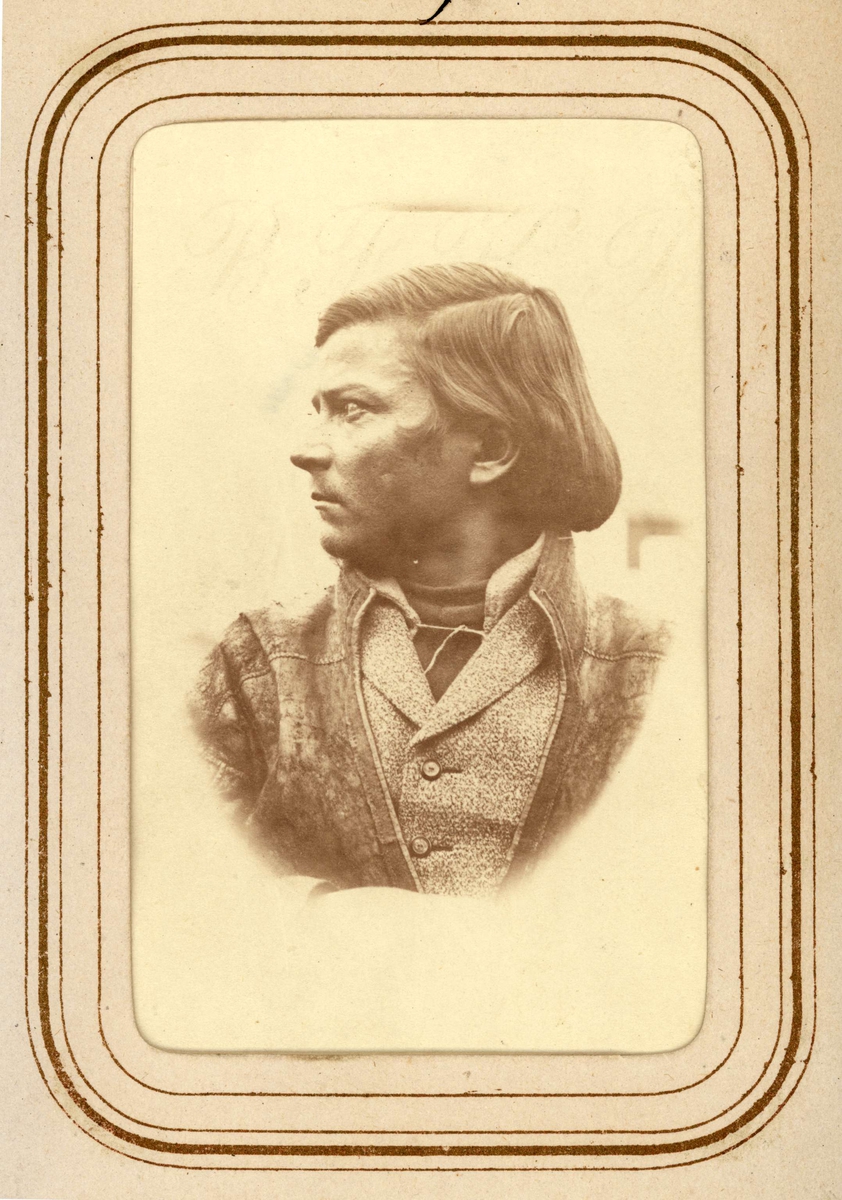 Profilporträtt av Per Olof Amundsson Länta, Sirkas sameby. Ur Lotten von Dübens fotoalbum med motiv från den etnologiska expedition till Lappland som leddes av hennes make Gustaf von Düben 1868.