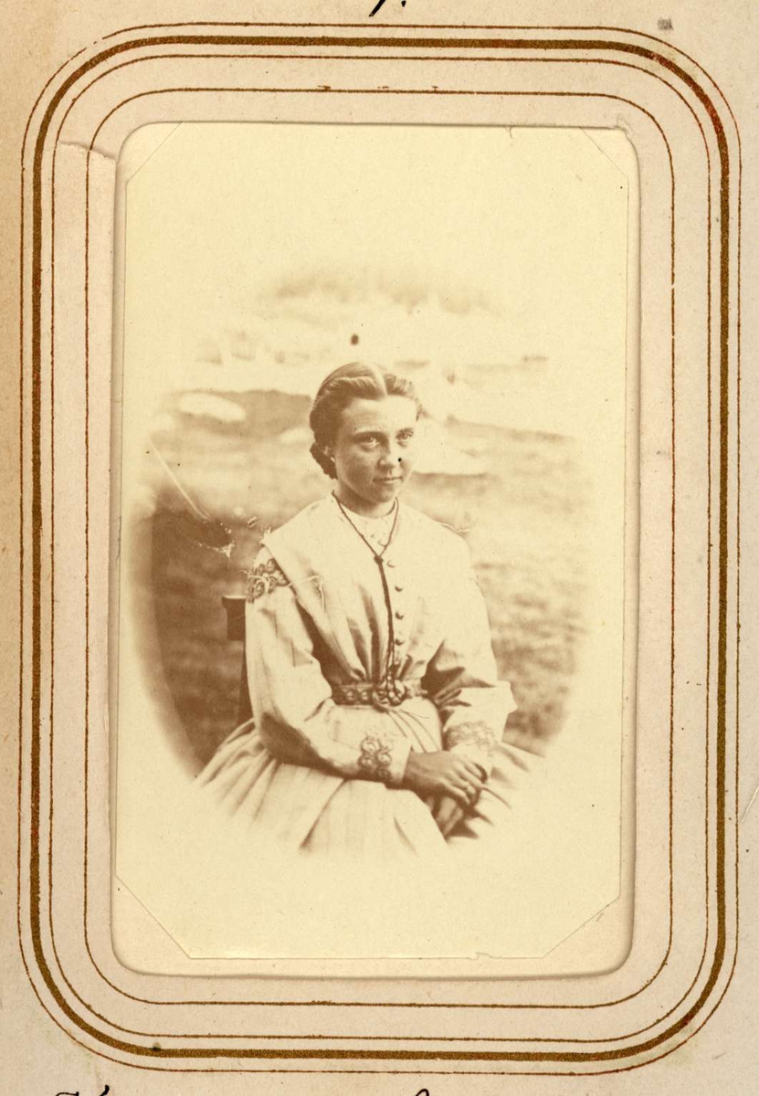 Porträtt av Maria Laestadius (1853-1878). Ur Lotten von Dübens fotoalbum med motiv från den etnologiska expedition till Lappland som leddes av hennes make Gustaf von Düben 1868.