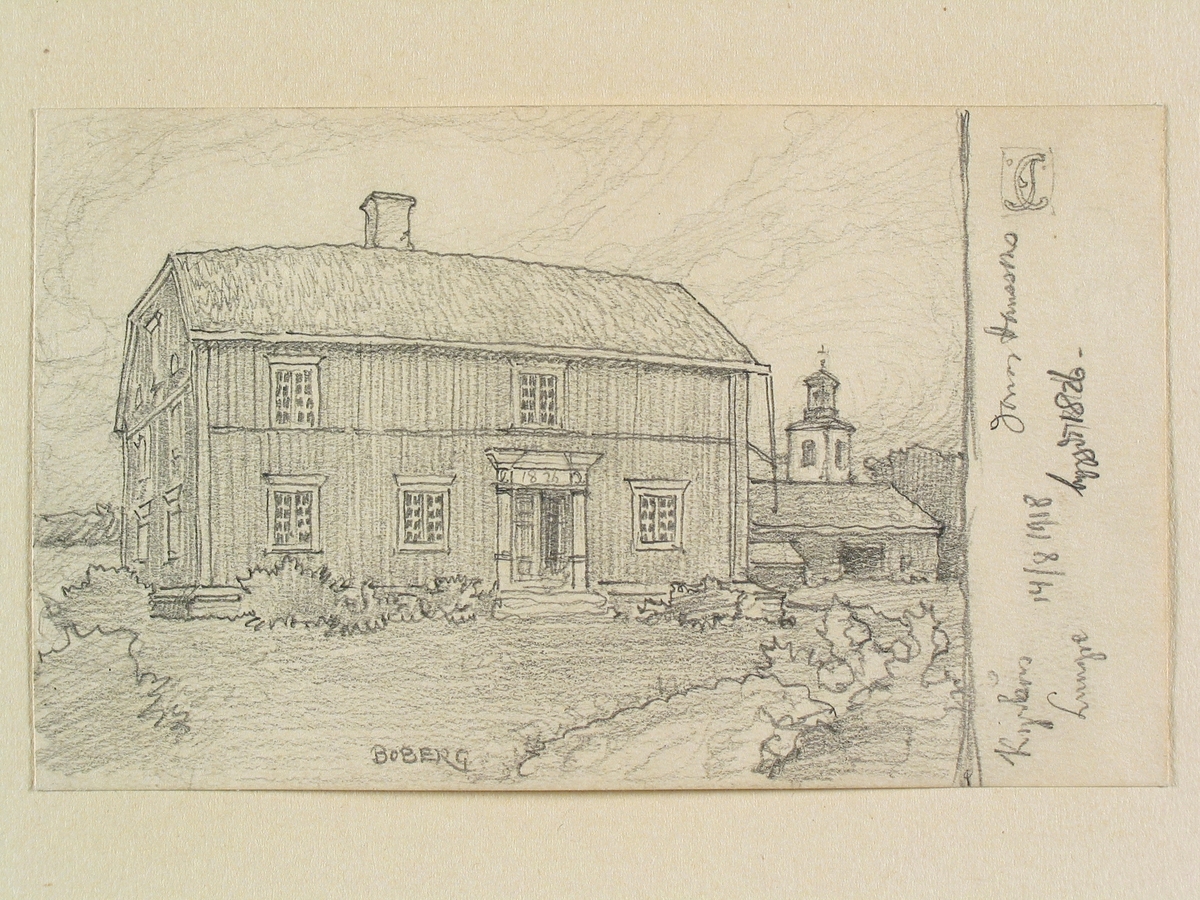 Jämtland, Kyrkås sn. "Lungre, Jonas Hanssons, byggt 1826". Teckning av Ferdinand Boberg