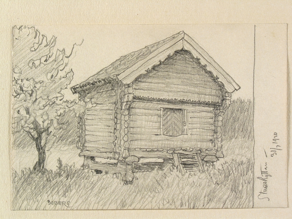 Dalarna, Folkare hd., Grytnäs sn., Stusshyttan. Visthusbod. Teckning av Ferdinand Boberg