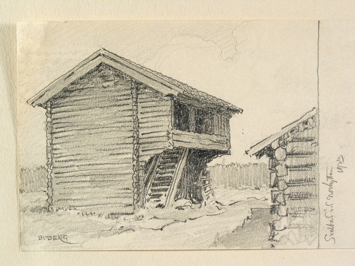 Dalarna, Grangärde sn. Svalbod vid Norhyttan. Teckning av Ferdinand Boberg