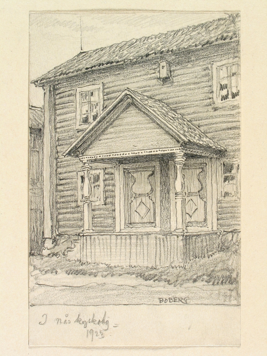 Dalarna, Nås sn., Nås kyrkby. Teckning av Ferdinand Boberg