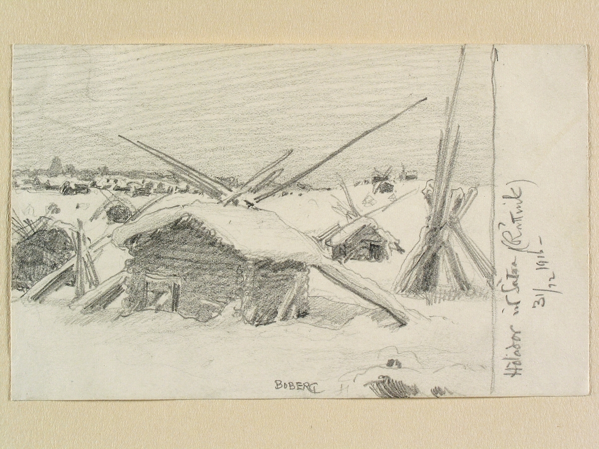 Dalarna, Rättviks sn. Hölador vid Sätra. Teckning av Ferdinand Boberg