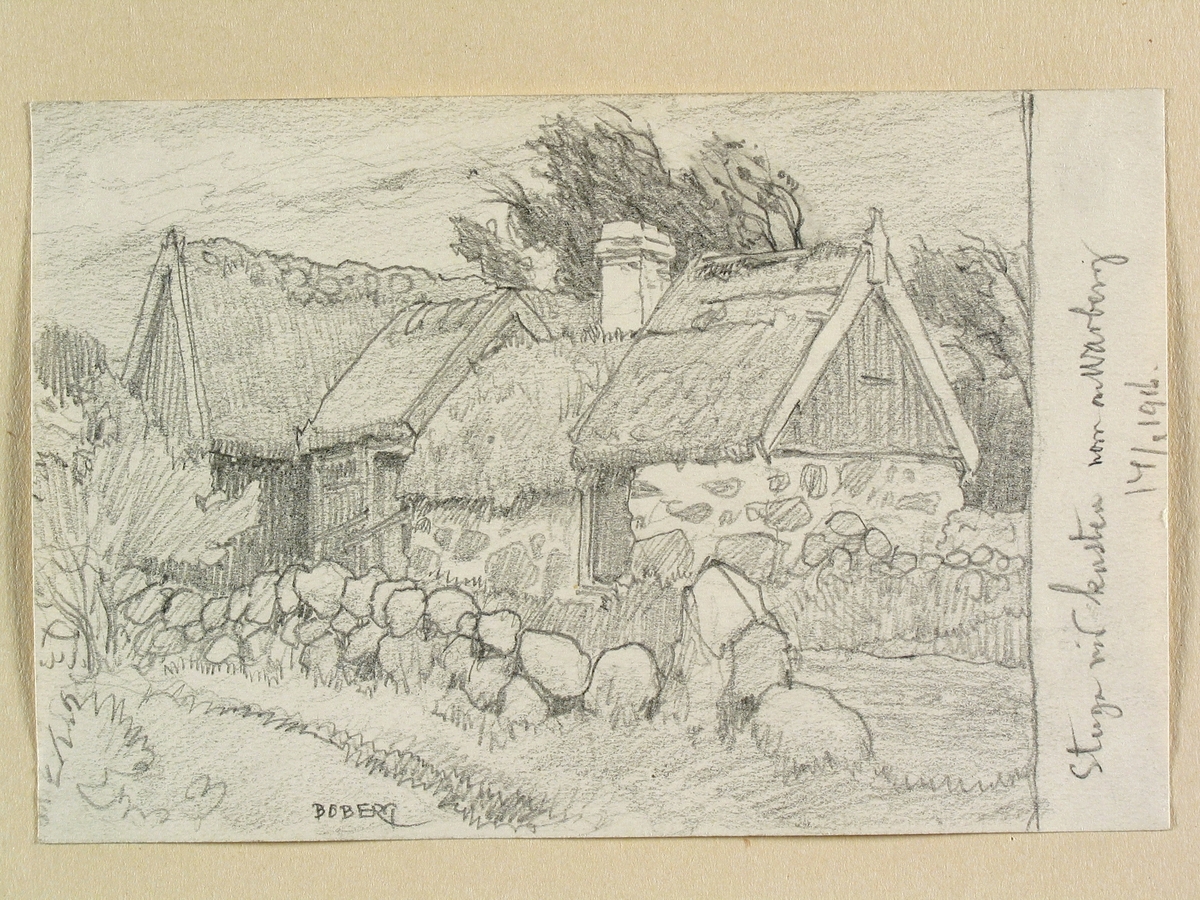 Halland. Stuga vid kusten norr om Varberg. Teckning av Ferdinand Boberg