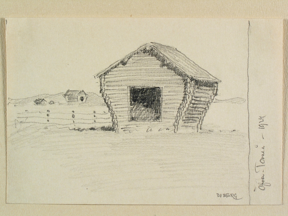 Norrbotten, Övertorneå. Uthus. Teckning av Ferdinand Boberg