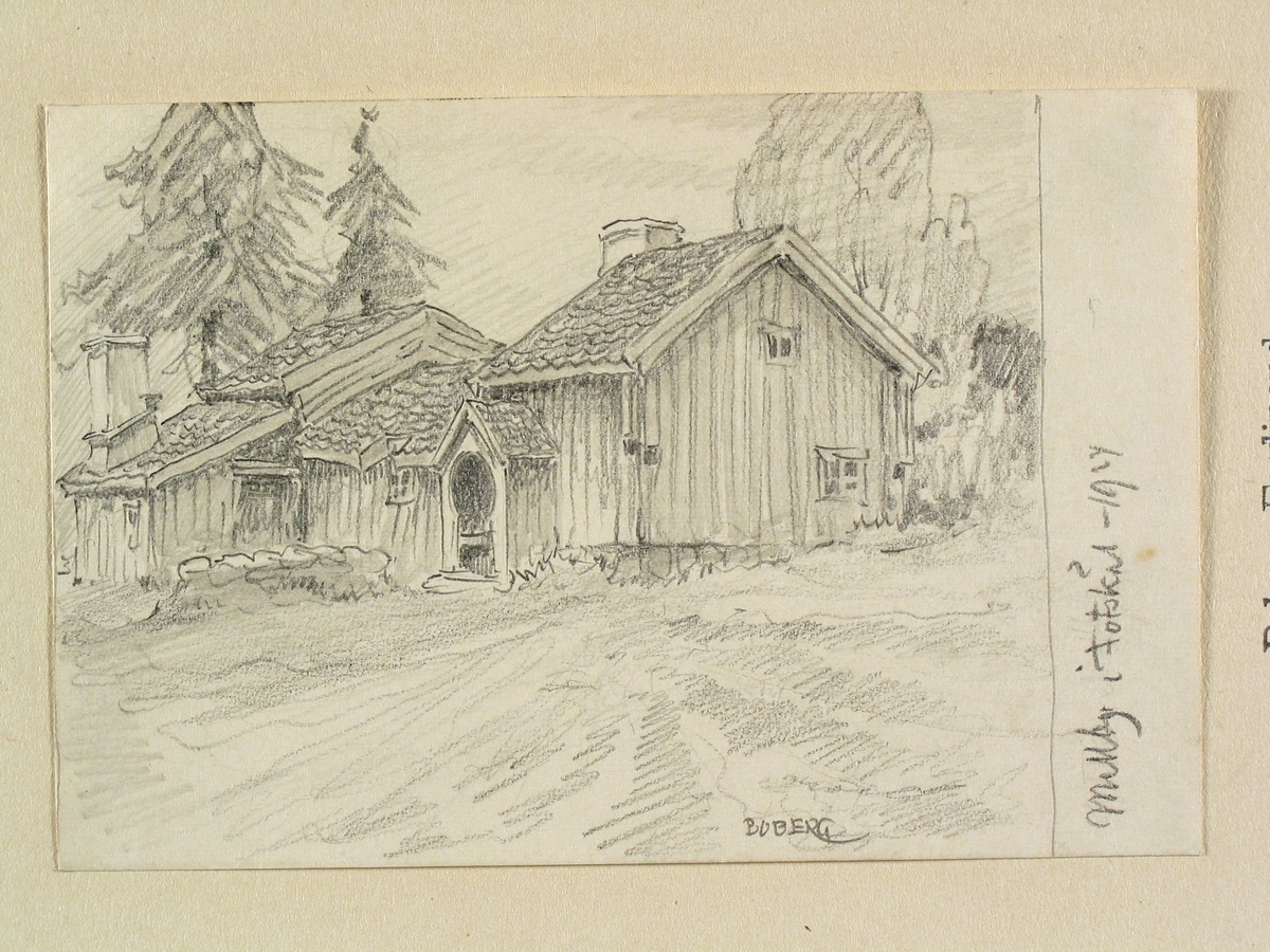 Västergötland, Marks hd., Hajoms sn. "Mellby i Fotskäl." Teckning av Ferdinand Boberg.