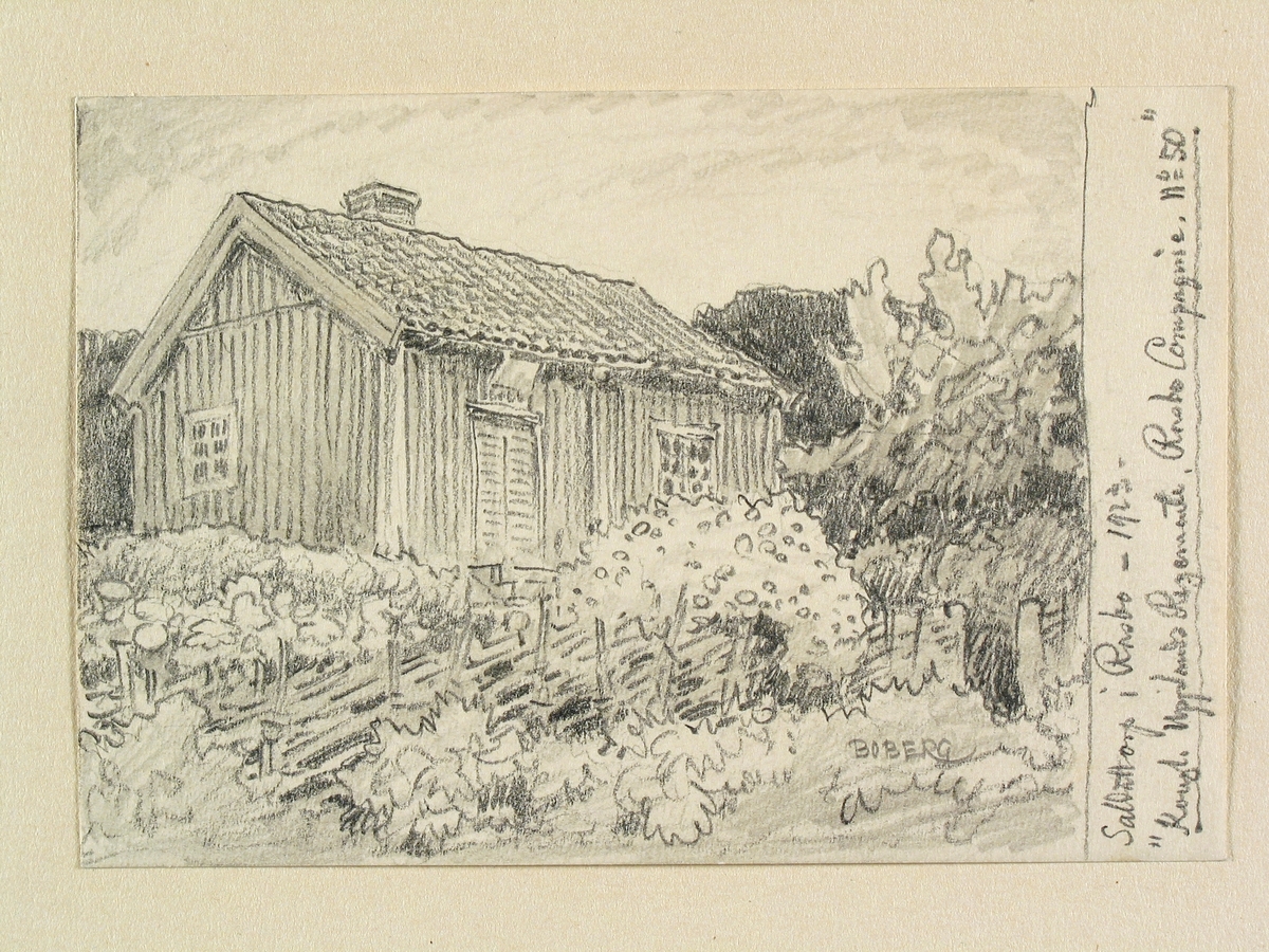 Uppland, Rasbo hd. Soldattorp i Rasbo. "Kongl. Upplands Regemente. Rasbo Compagnie n:o 50". Teckning av Ferdinand Boberg