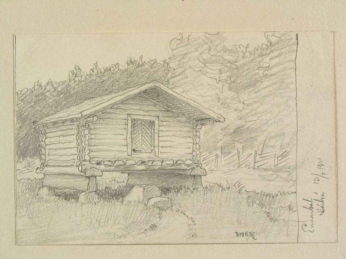 Värmland, Älvdals hd., Norra Ny sn. Härbre i Ennarbol. Teckning av Ferdinand Boberg