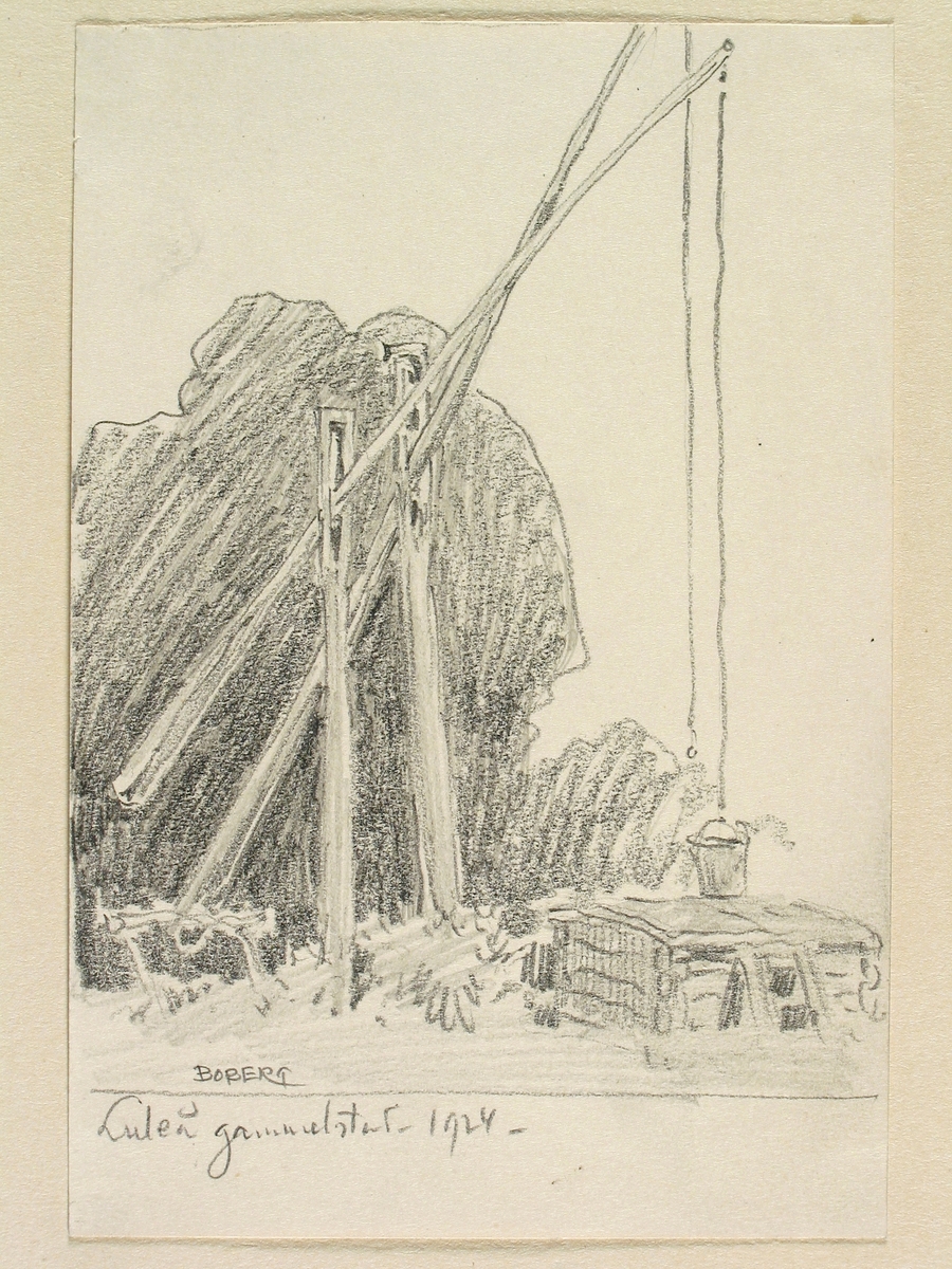 Norrbotten, Nederluleå sn., Luleå gammelstad. Brunn. Teckning av Ferdinand Boberg