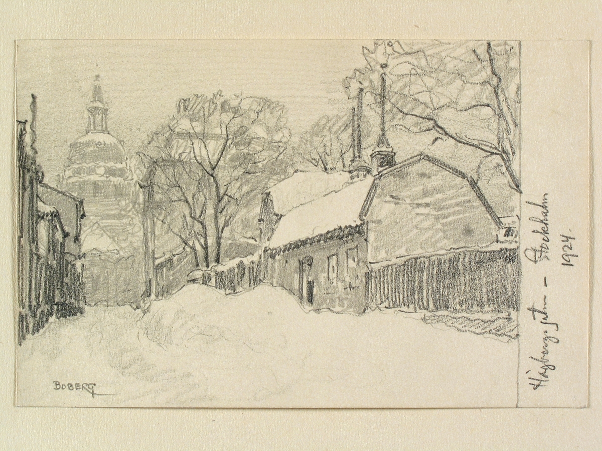 Teckning av Ferdinand Boberg. Stockholm, Söder, Högbergsgatan