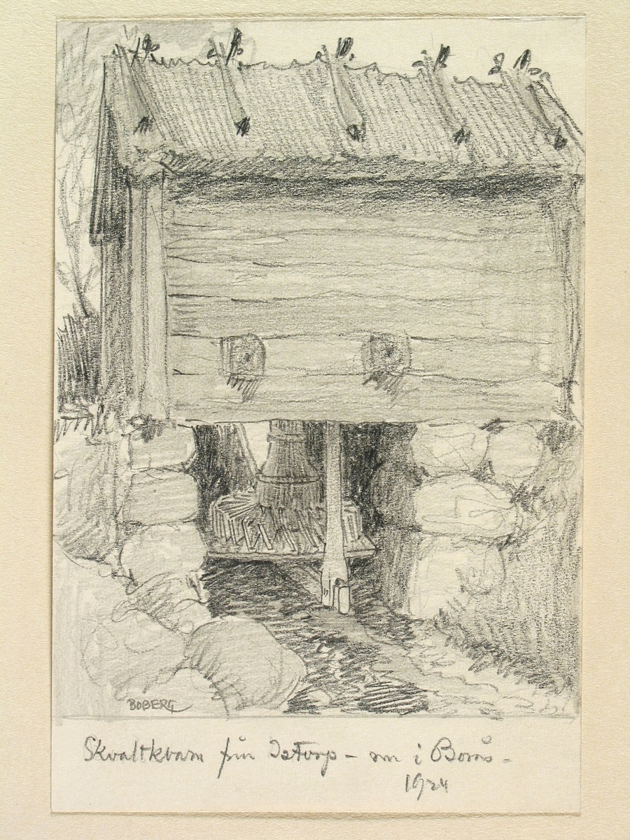Teckning av Ferdinand Boberg. Västergötland, Marks hd., Istorps sn., Borås friluftsmuseum