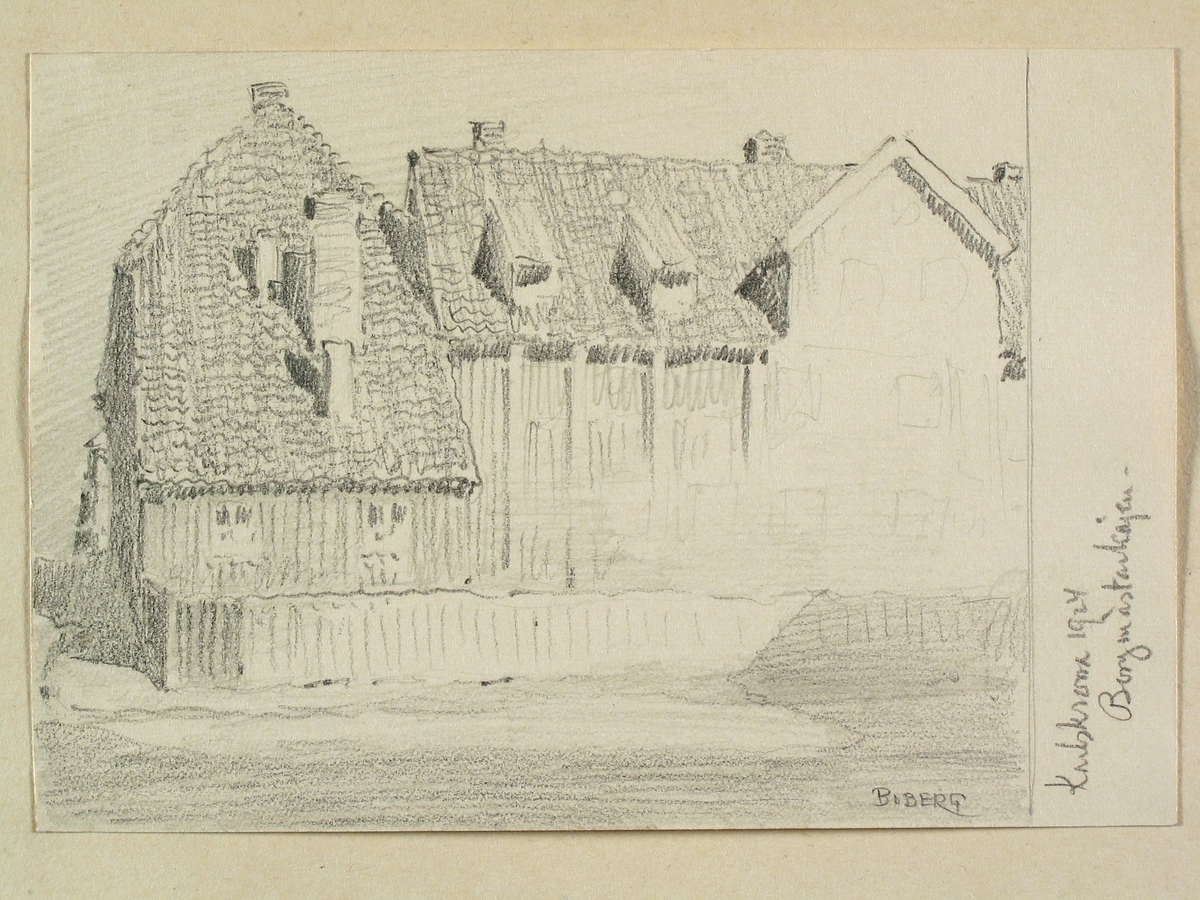 Teckning av Ferdinand Boberg. Karlskrona, Borgmästarkajen