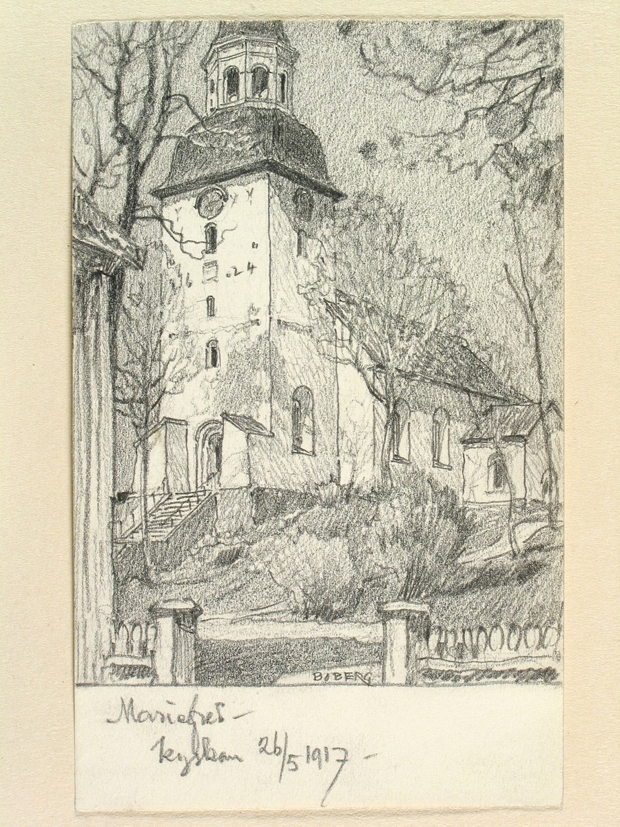 Teckning av Ferdinand Boberg. Mariefred, Mariefreds kyrka