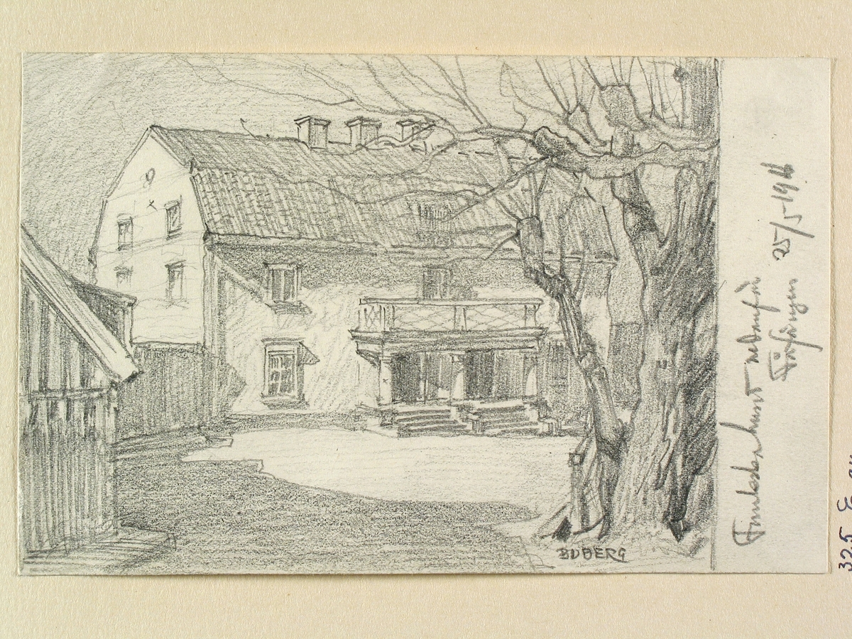 Teckning av Ferdinand Boberg. Stockholm, Söder, Fåfängan, Kv. Tegelviken m., 7,8, Danviksgatan 1,3, Funchska huset,