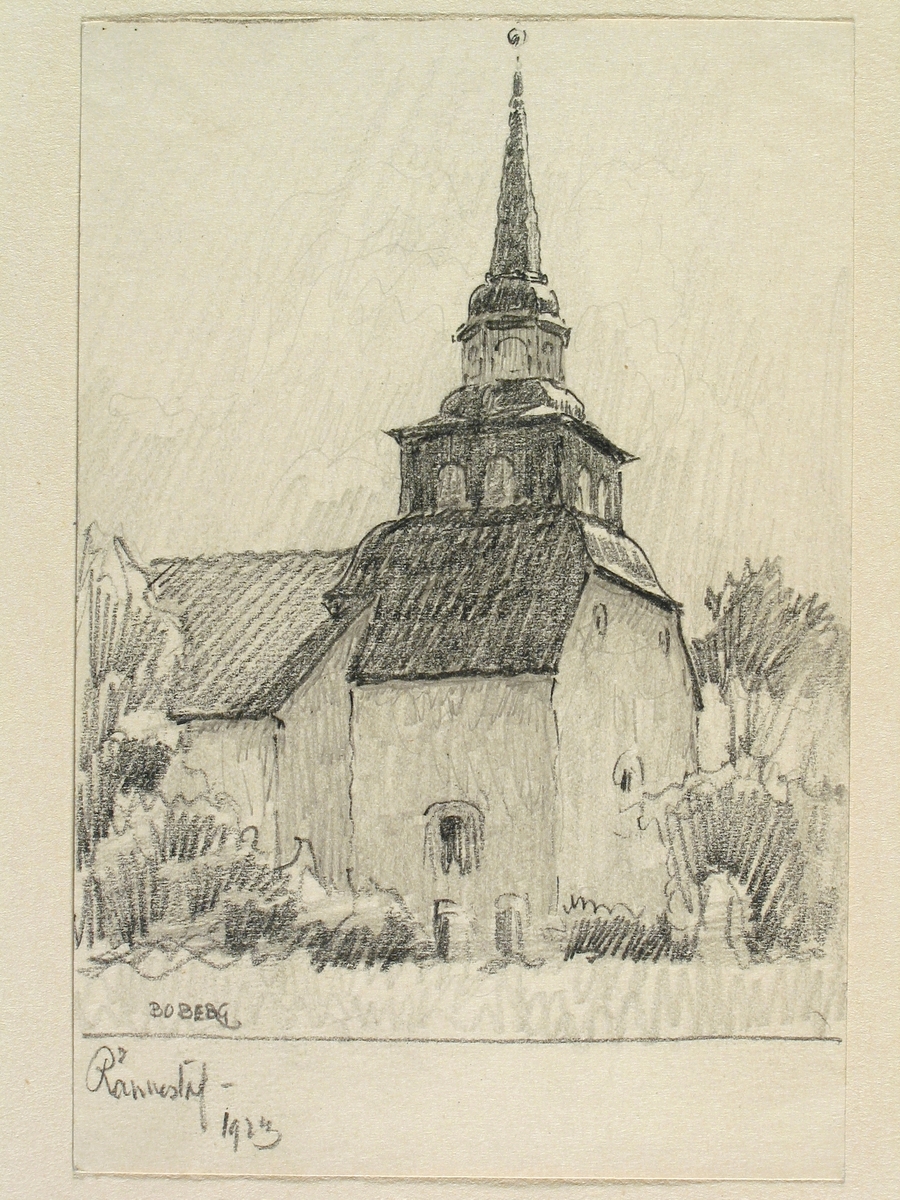 Teckning av Ferdinand Boberg. Halland, Höks hd., Ränneslös kyrka