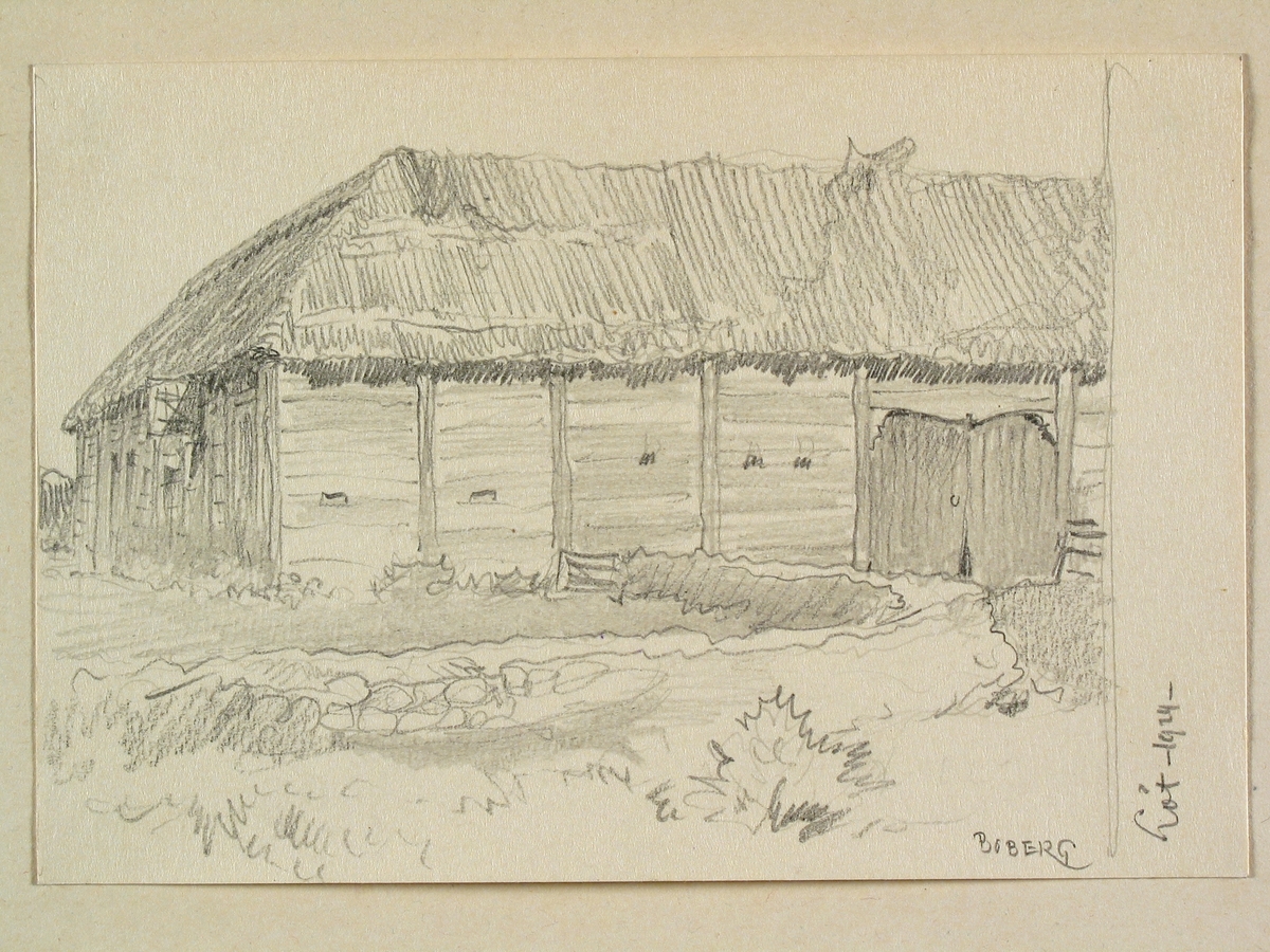 Öland, Runstens hd., Löt. Ladugårsbyggnad. Teckning av Ferdinand Boberg.