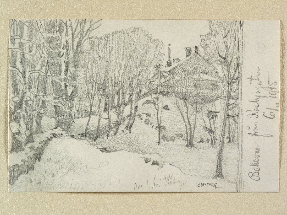 Teckning av Ferdinand Boberg. Stockholm, Norrmalm, Kv. Kråkvilan 24, Roslagsgatan 57, Bellevue