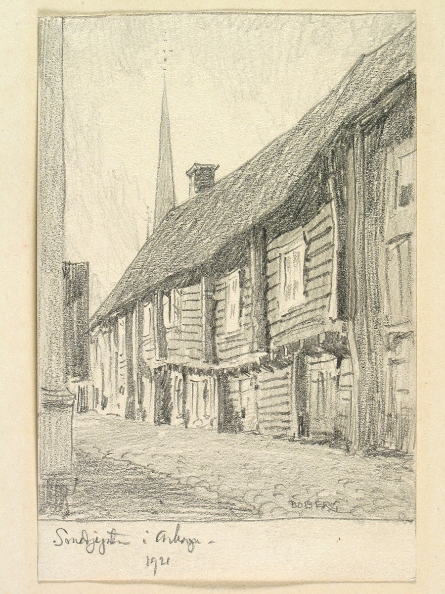Teckning av Ferdinand Boberg. Arboga, Smedjegatan