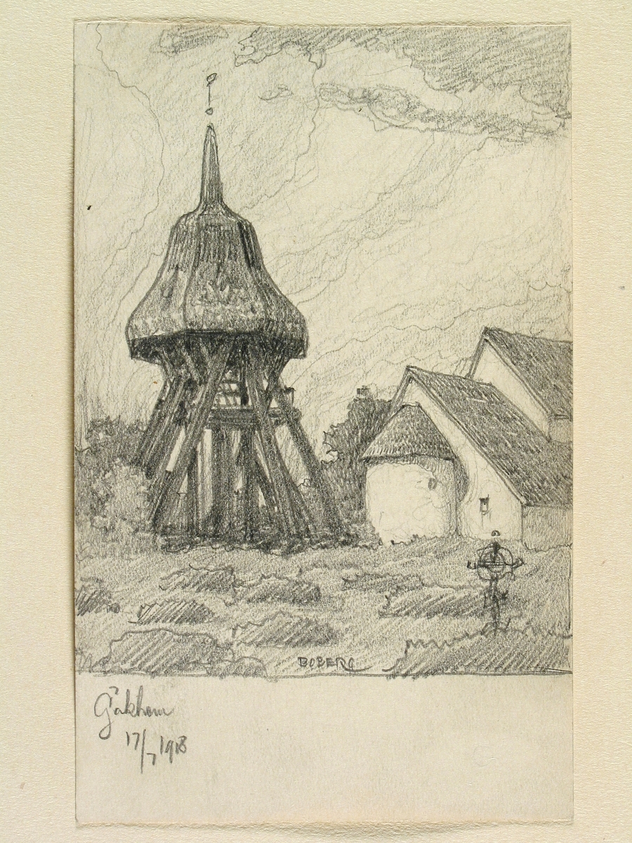Teckning av Ferdinand Boberg. Västergötland, Vilske hd., Gökhems k:a