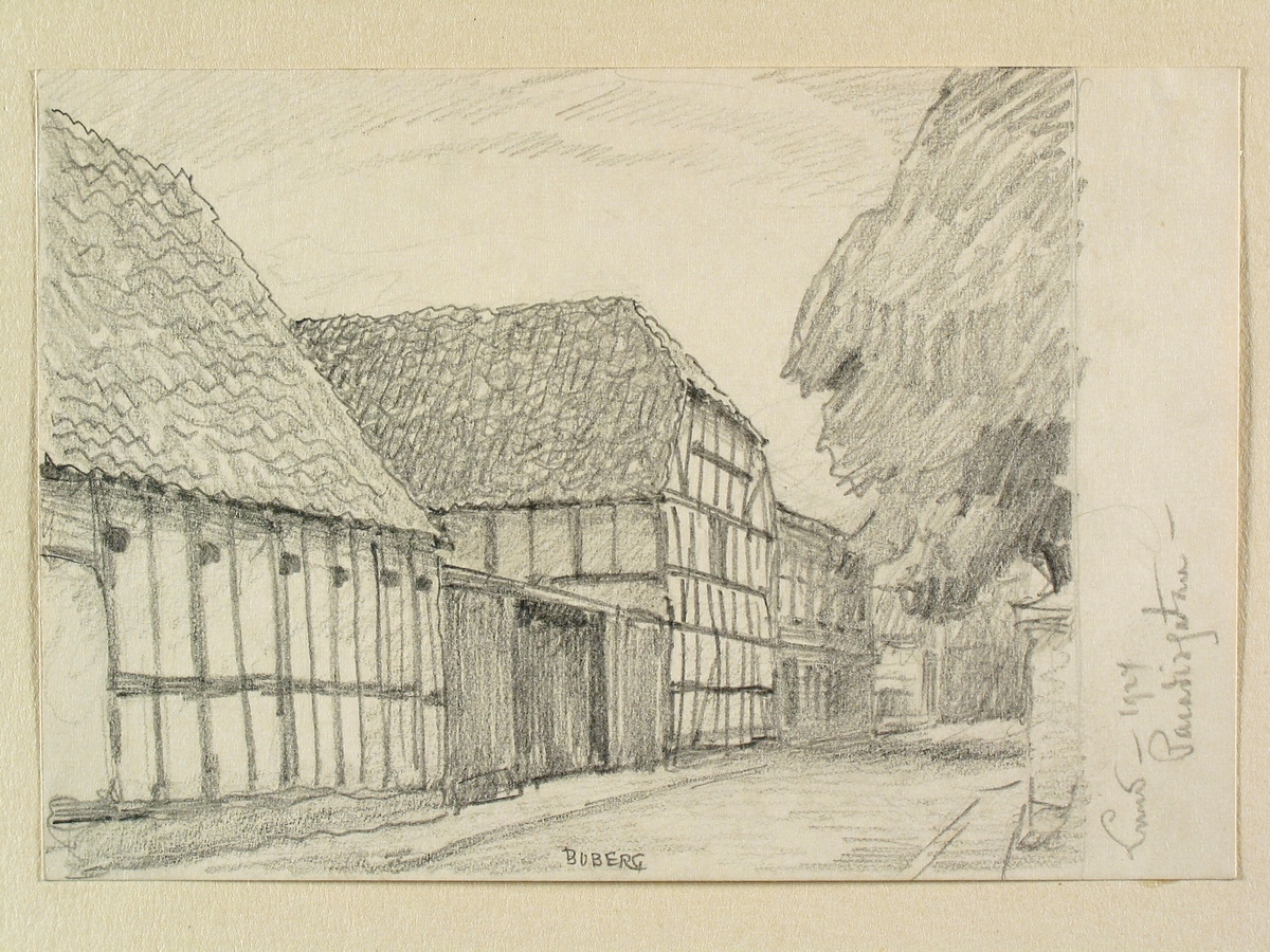 Teckning av Ferdinand Boberg. Lund, Paradisgatan,