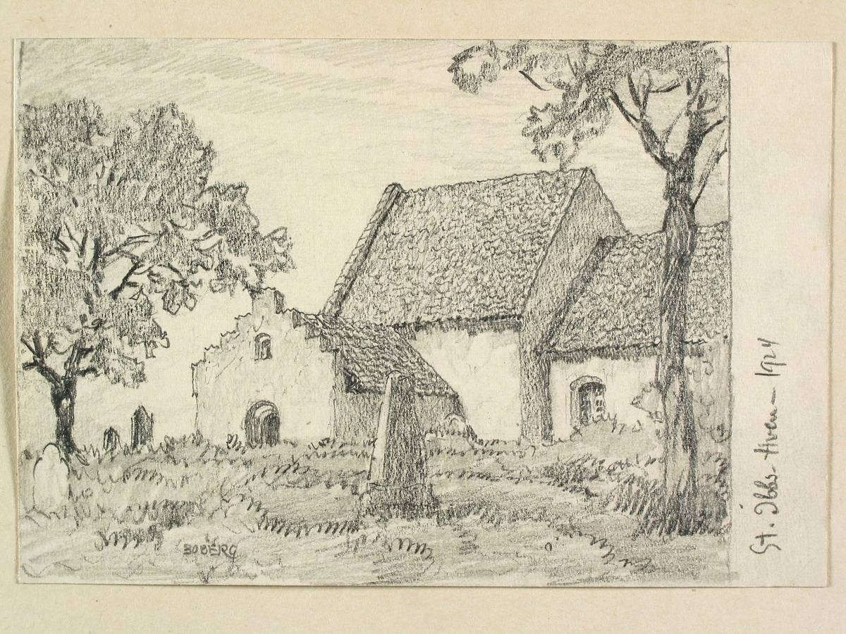 Teckning av Ferdinand Boberg. Skåne , Rönnebergs hd., S:t Ibbs kyrka