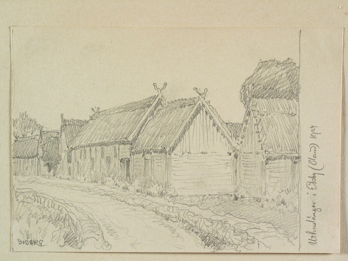 Öland, Runstens hd., Egby. Uthuslänga. Teckning av Ferdinand Boberg.