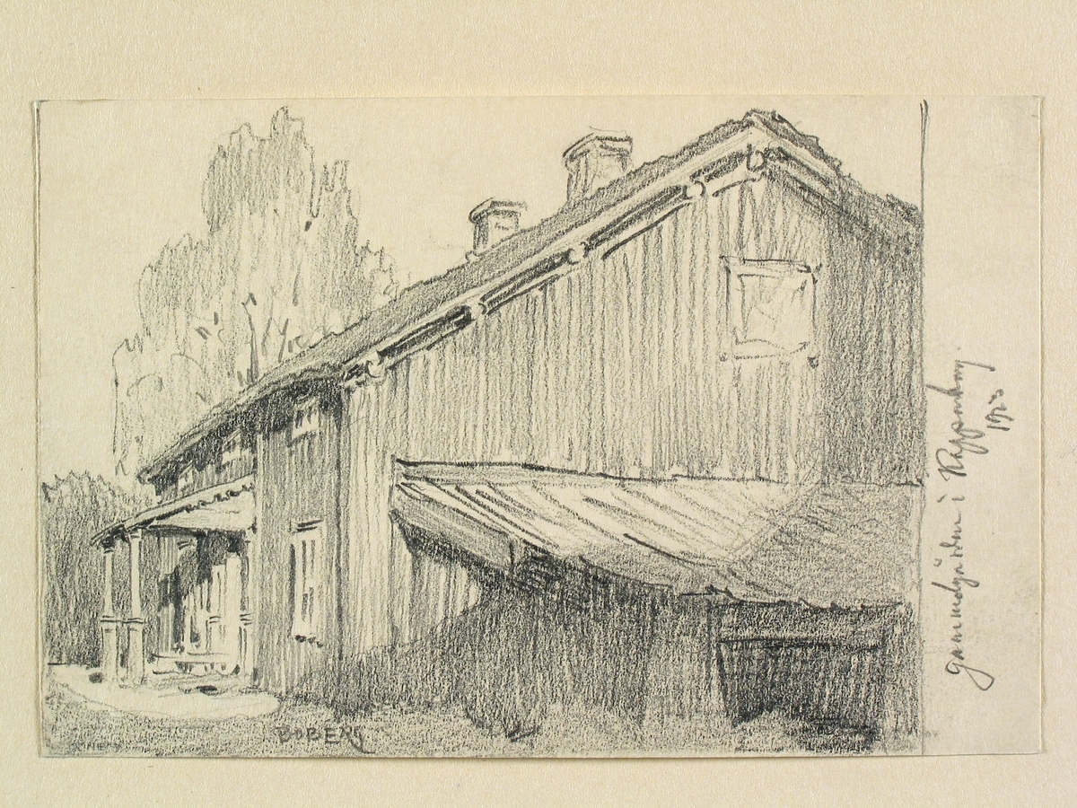 Västmanland, Nya Kopparbergs bergslag, Ljusnarsbergs sn., Kopparberg, Gammelgården. Teckning av Ferdinand Boberg.