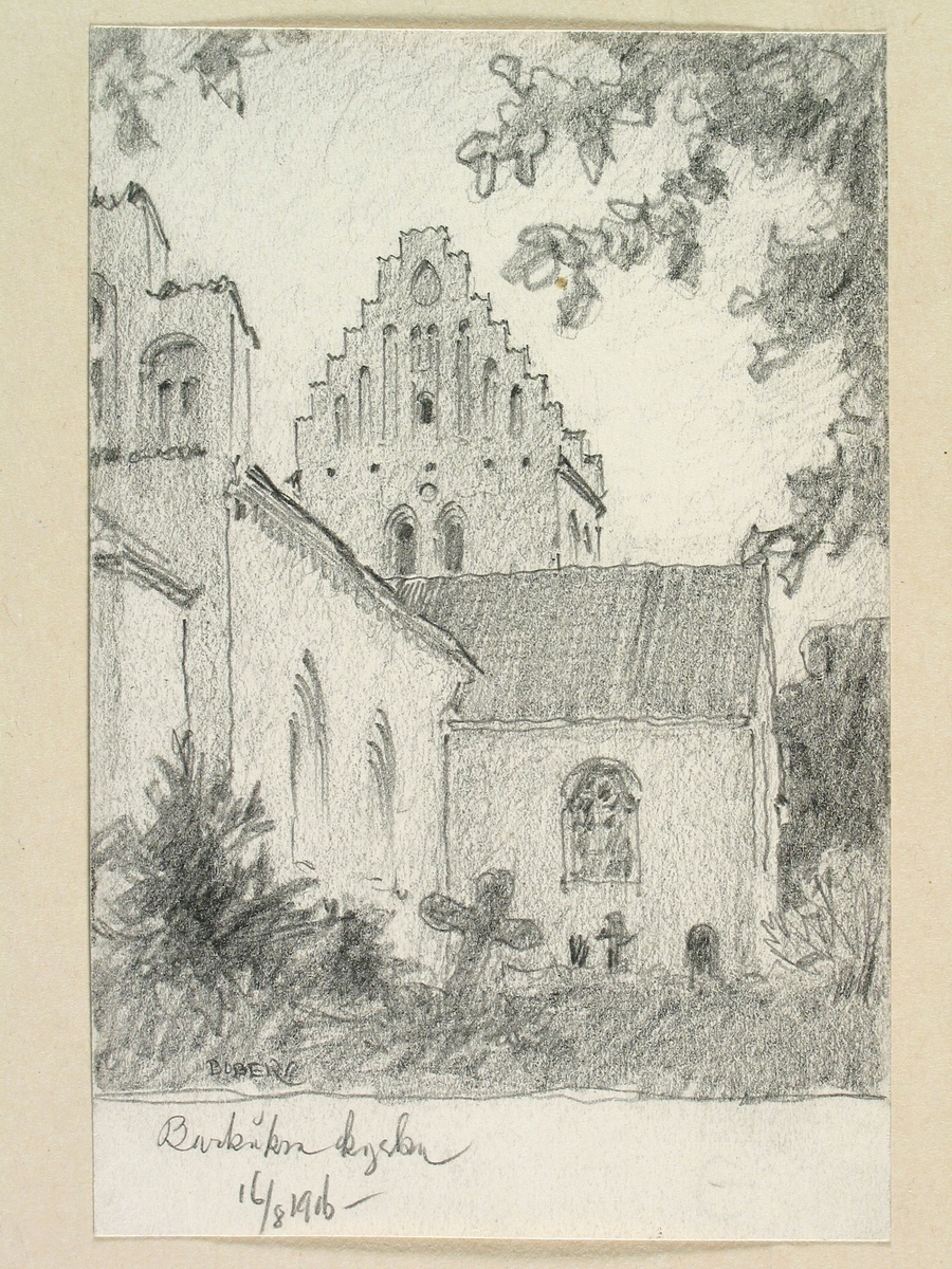 Teckning av Ferdinand Boberg. Skåne, Bjäre hd., Barkåkra kyrka