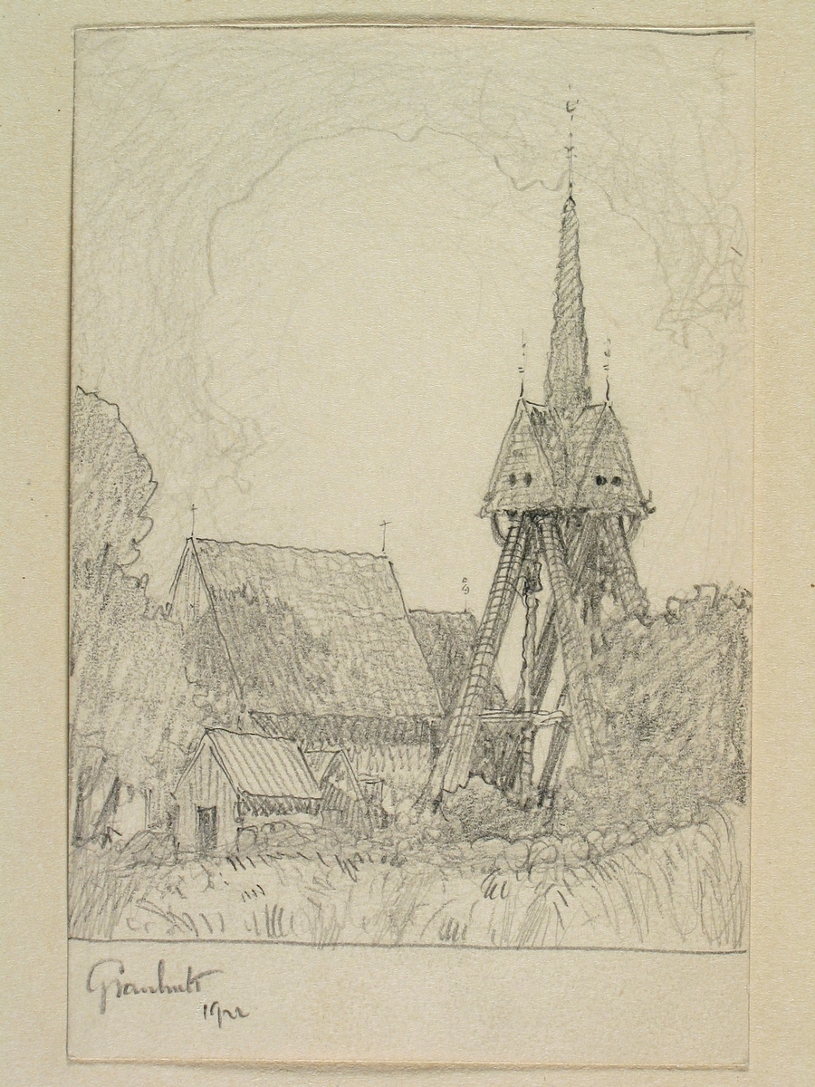 Teckning av Ferdinand Boberg. Småland, Uppvidinge hd., Nottebäcks sn., Granhults kyrka