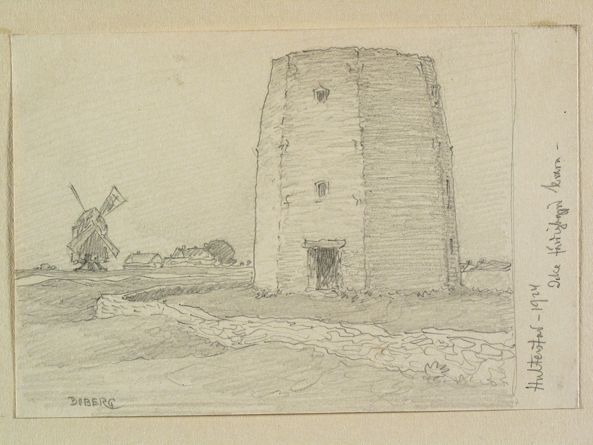 Öland, Möckleby hd., Hulterstads sn. "Icke färdigbyggd kvarn". Teckning av Ferdinand Boberg.