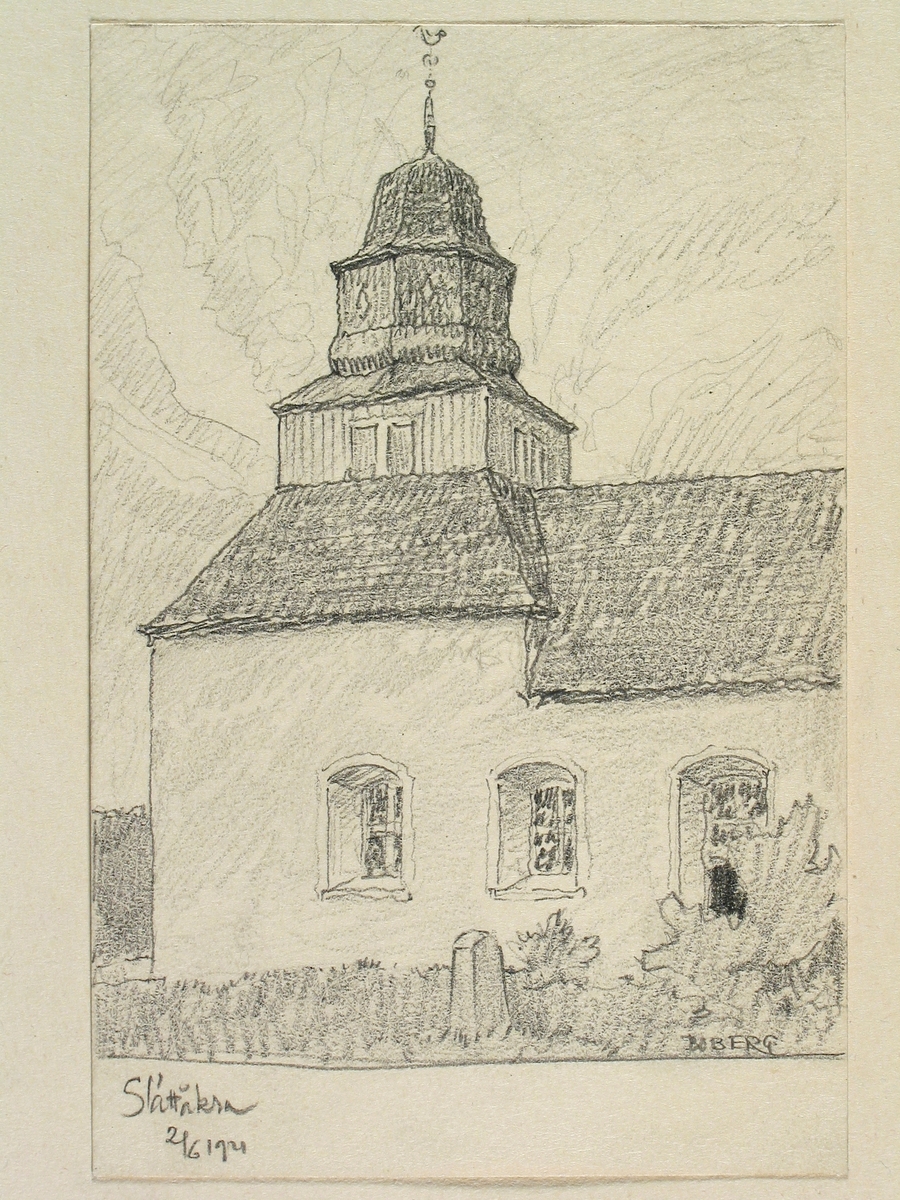 Teckning av Ferdinand Boberg. Halland, Halmstads hd., Slättåkra kyrka