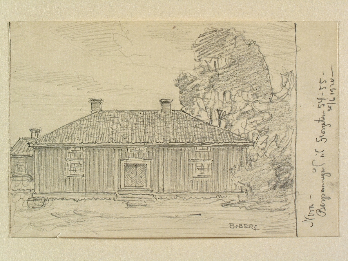 Teckning av Ferdinand Boberg. Nora, Storgatan 54-55