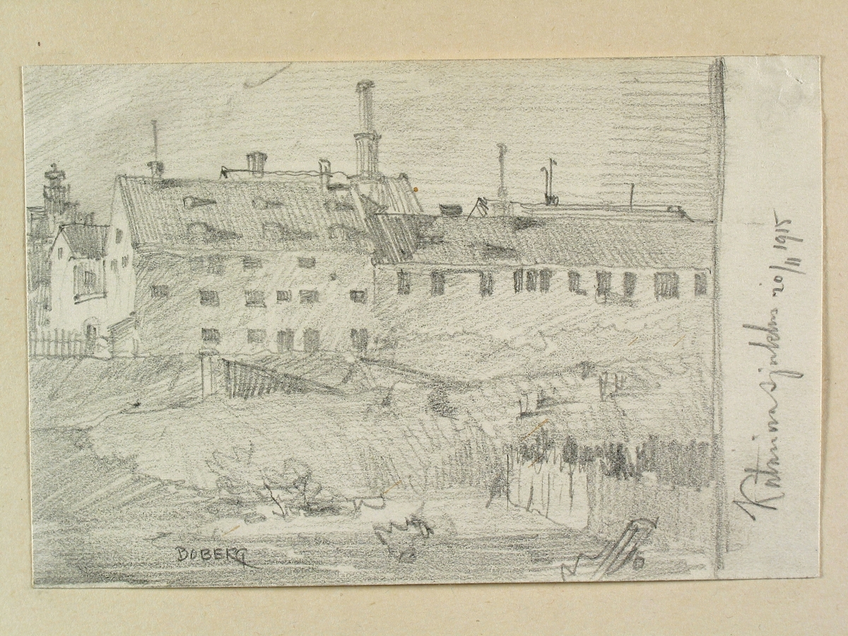Teckning av Ferdinand Boberg. Stockholm, Söder, Kv. Bondetorpet m. 1-3-5-4., N. Sandbergsgat.I, Katarina sjukhus