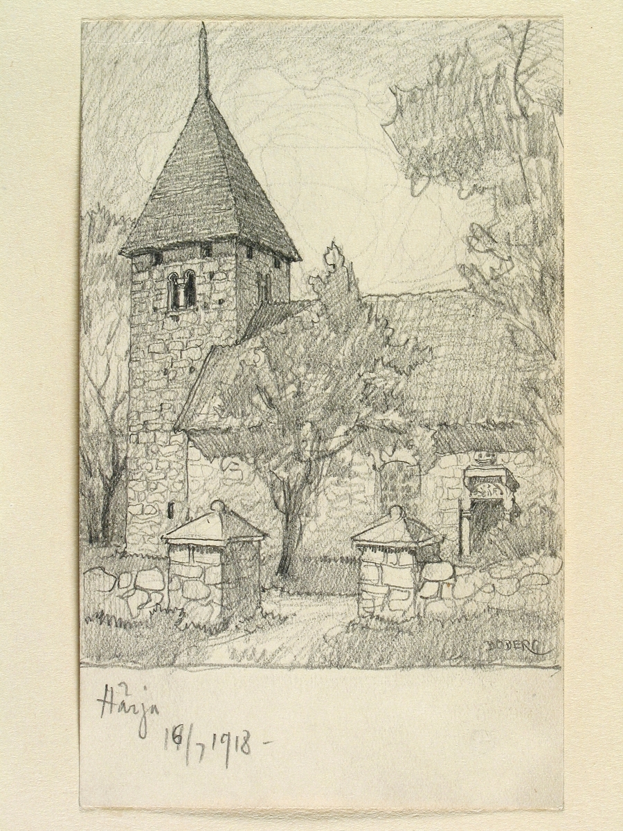 Teckning av Ferdinand Boberg. Västergötland, Vartofta hd., Härja k:a
