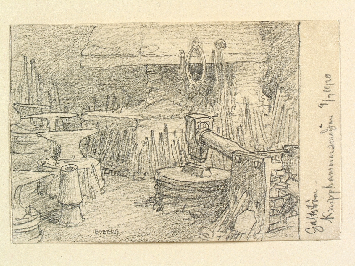Medelpad, Njurunda sn. Knipphammarsmedjan, Galtström. Teckning av Ferdinand Boberg
