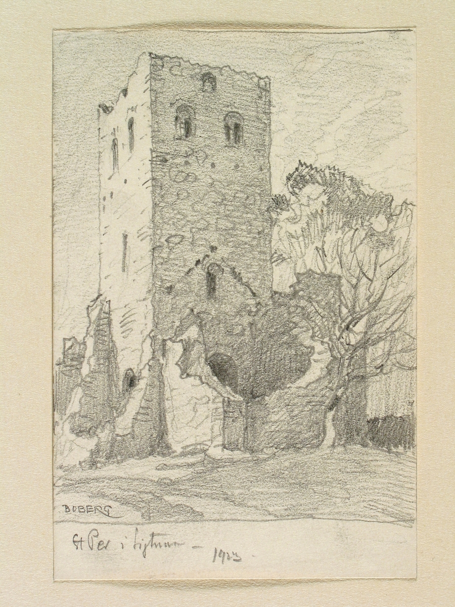 Teckning av Ferdinand Boberg. Uppland, S:t Pers ruin
