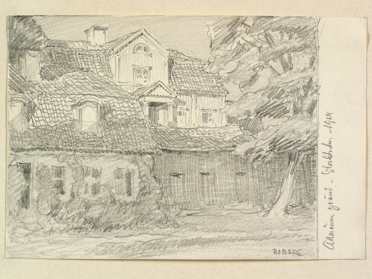 Teckning av Ferdinand Boberg. Stockholm, Djurgården, Kv. , Allm. gränd