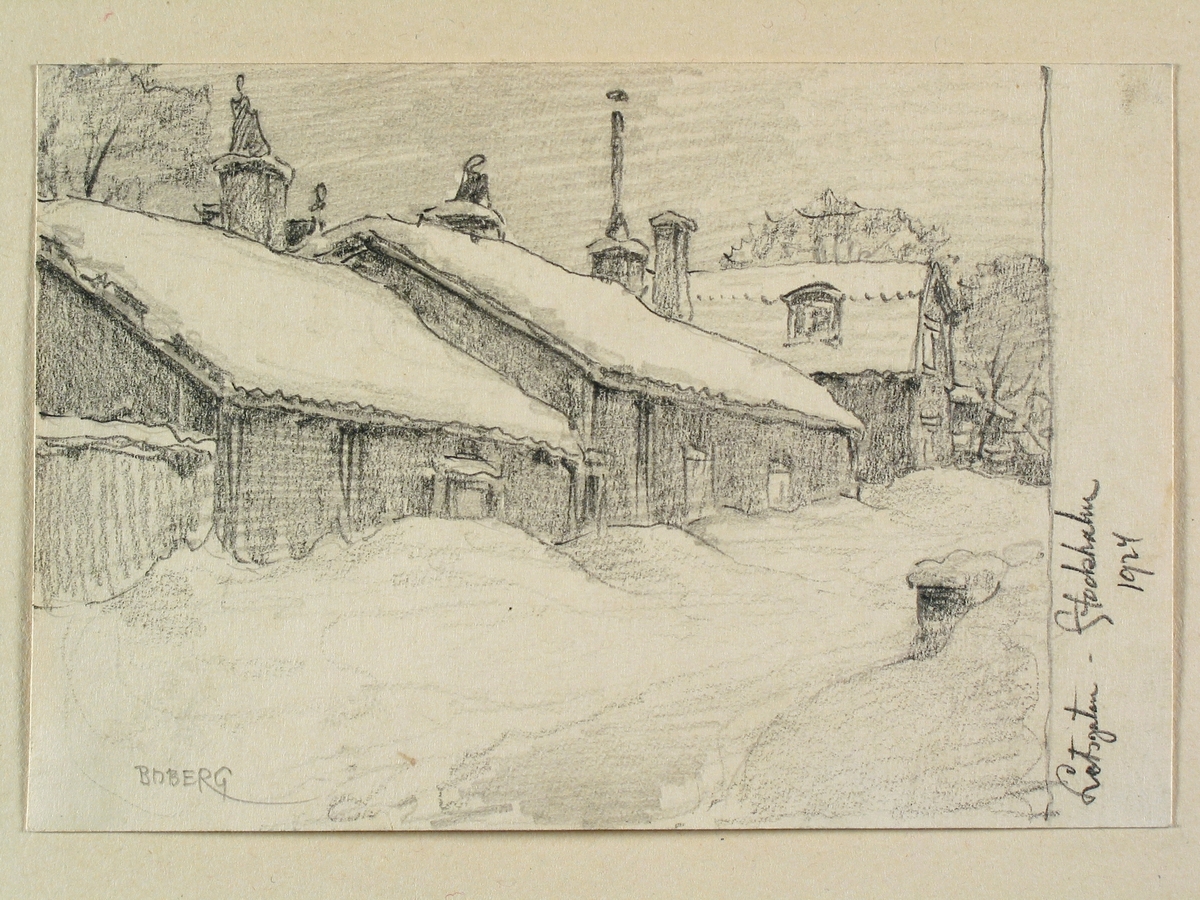 Teckning av Ferdinand Boberg. Stockholm, Söder, Kv. Lotsgatan