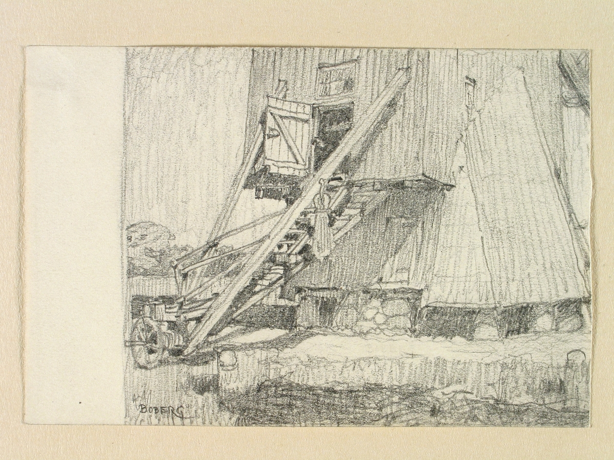 Del av väderkvarn. Skåne, Helsingborgstrakten. Teckning av Ferdinand Boberg