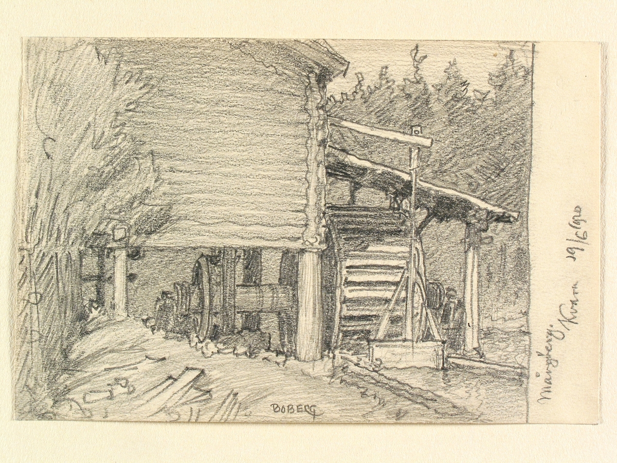 Dalarna, Solleröns sn., Mångberg. Kvarn. Teckning av Ferdinand Boberg