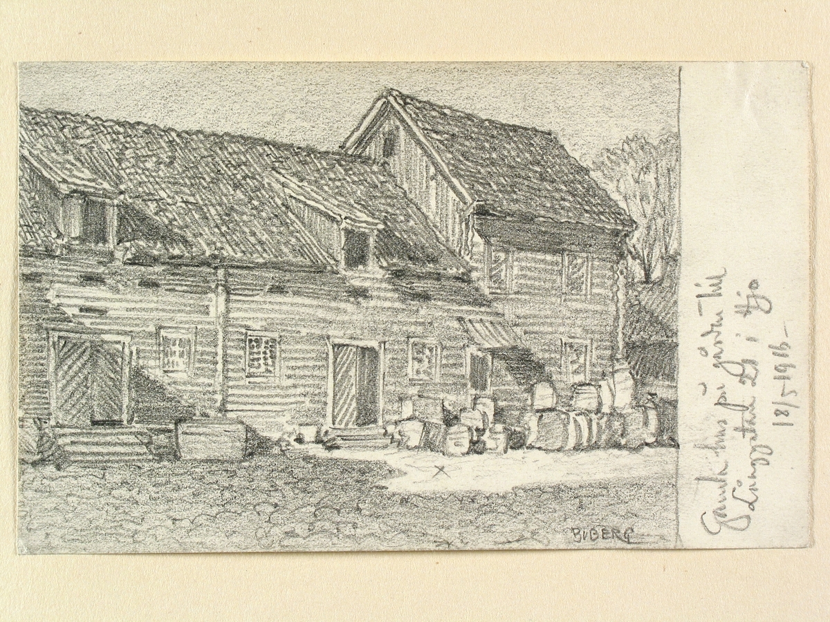 Teckning av Ferdinand Boberg. Hjo, Långgatan 21