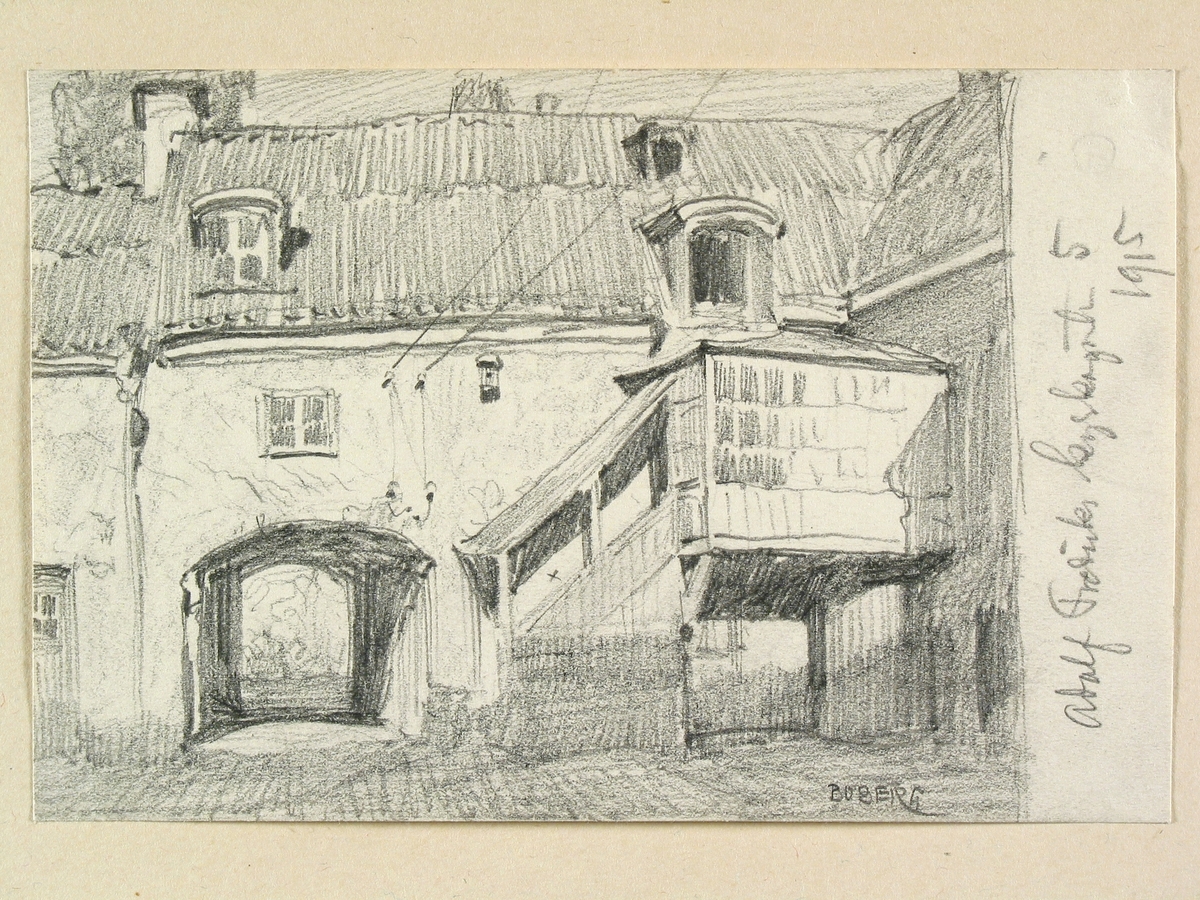 Teckning av Ferdinand Boberg. Stockholm, Norrmalm, Kv. Vargen 8, Adolf Fredriks Kyrkogata 5