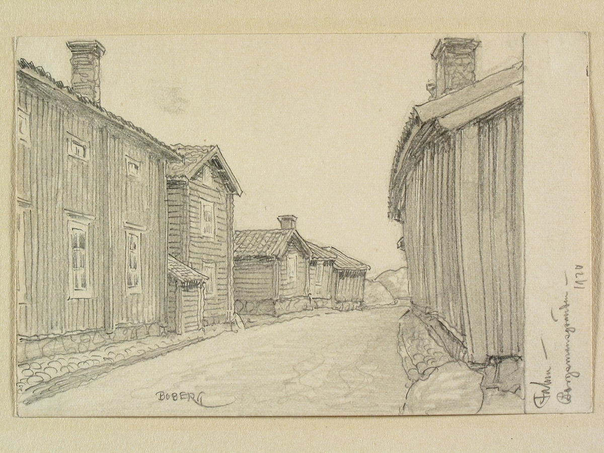 Teckning av Ferdinand Boberg. Falun, Bergsmansgränden