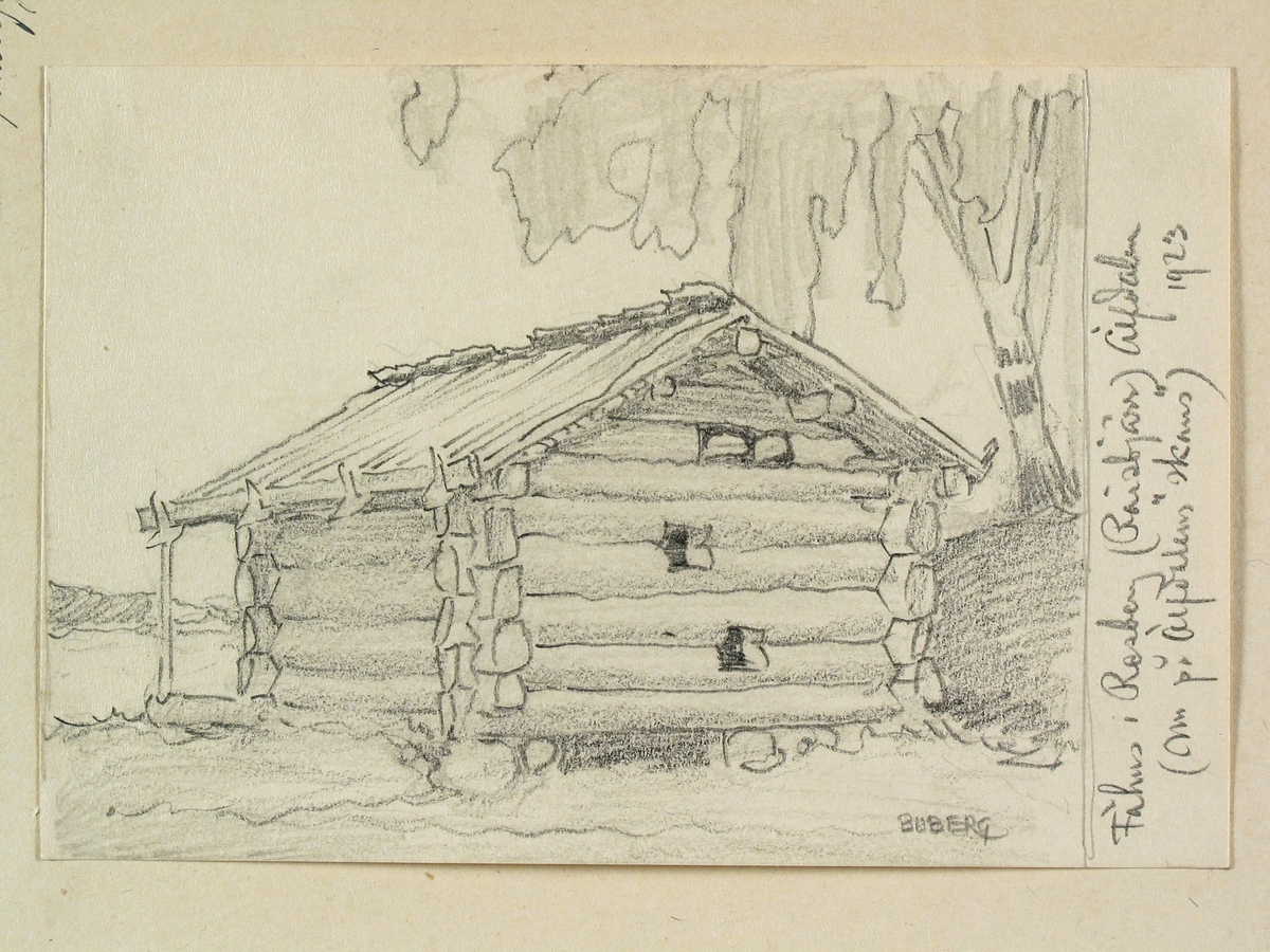 Teckning av Ferdinand Boberg. Dalarna, Älvdalens sn., Resberg, Hembygdsgården Rot Skans