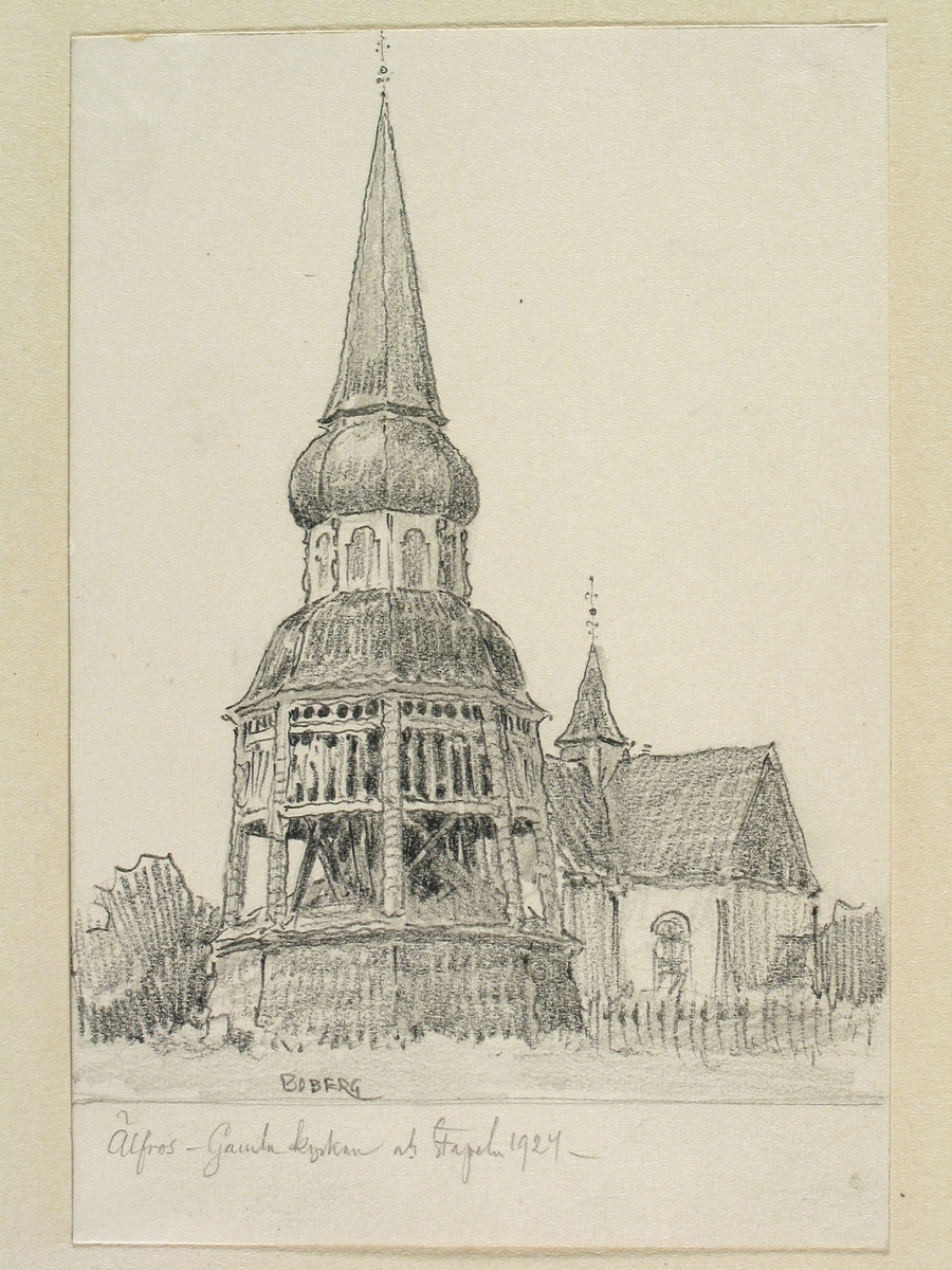 Teckning av Ferdinand Boberg. Härjedalen, Älfros k:a
